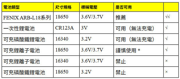 *僅對FENIX ARB-L18系列18650可充電鋰離子電池有效。