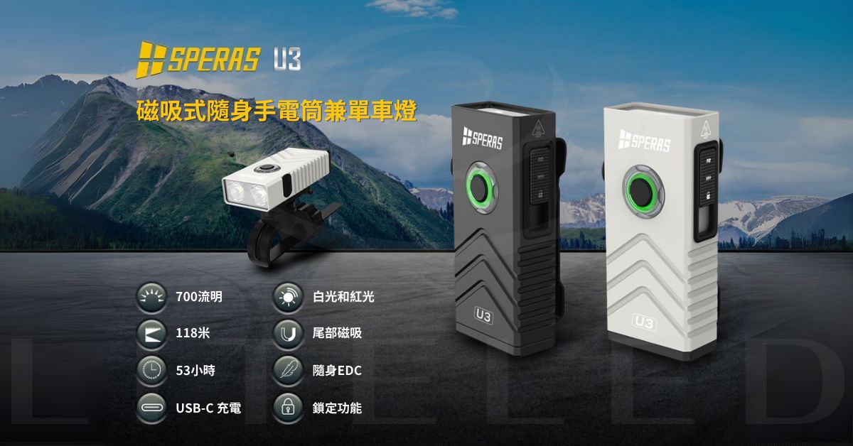 SPERAS U3 手電筒專為戶外探險家和城市探險家設計,將堅固耐用的戶外性能與日常多功能性完美結合。這款小巧強大的手電筒輕巧便攜,經久耐用,是您應對任何情況的首選工具。無論您是夜間騎行、野外徒步,還是處理日常事務,SPERAS U3 都能為您照亮前路。