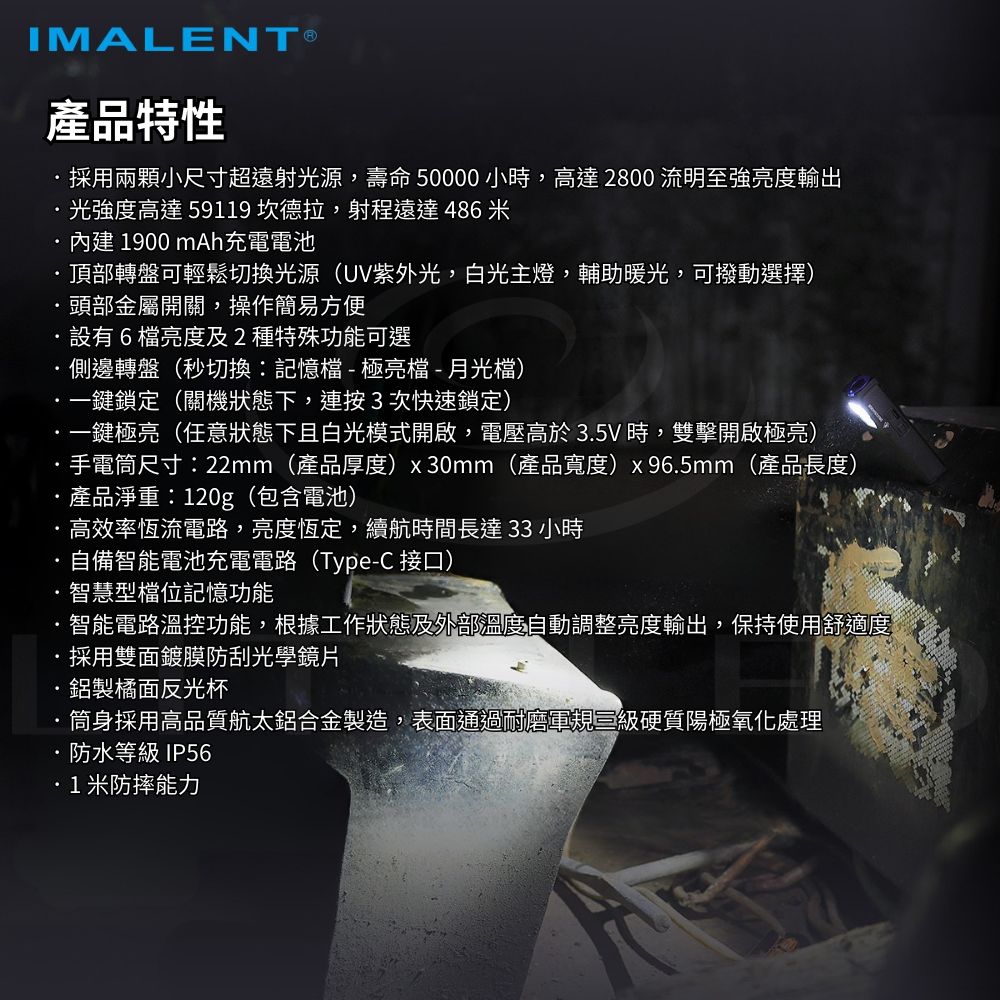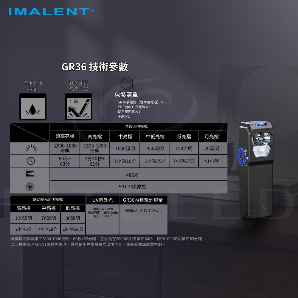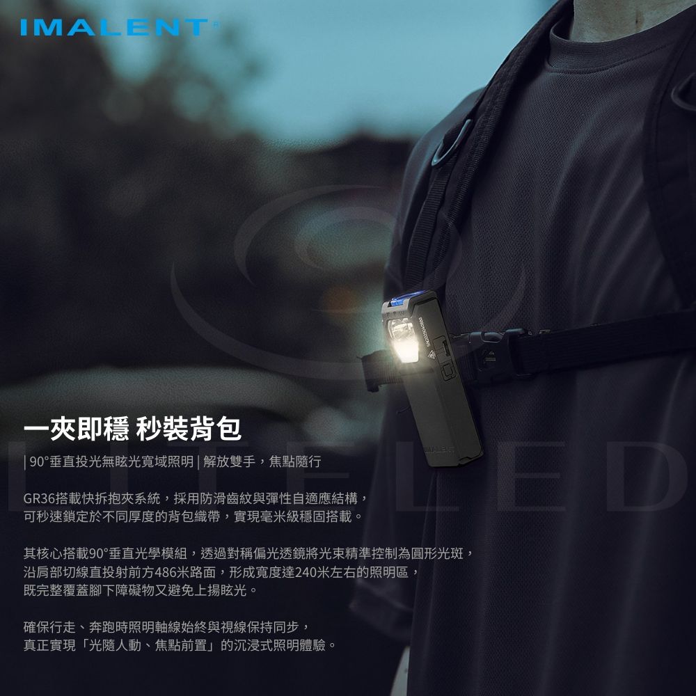 IMALENT GR36 手電筒,擁有2800流明亮度、486米射程,具備多種光源選擇及智能電路,完美結合性能與耐用性。