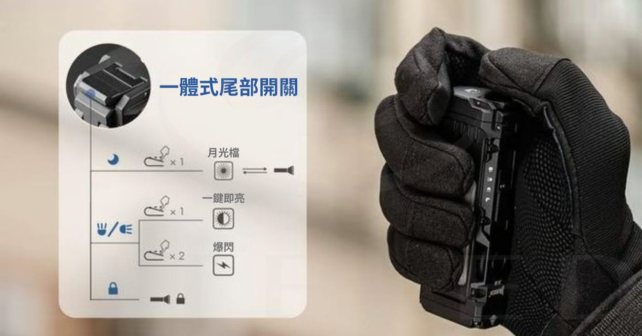 X4 配備獨特的按壓板和旋轉按鈕組合,提供更便攜、更人性化的手電筒操作方式。輕鬆切換模式,精準調整亮度,並可一鍵鎖定,讓您安心日常攜帶。