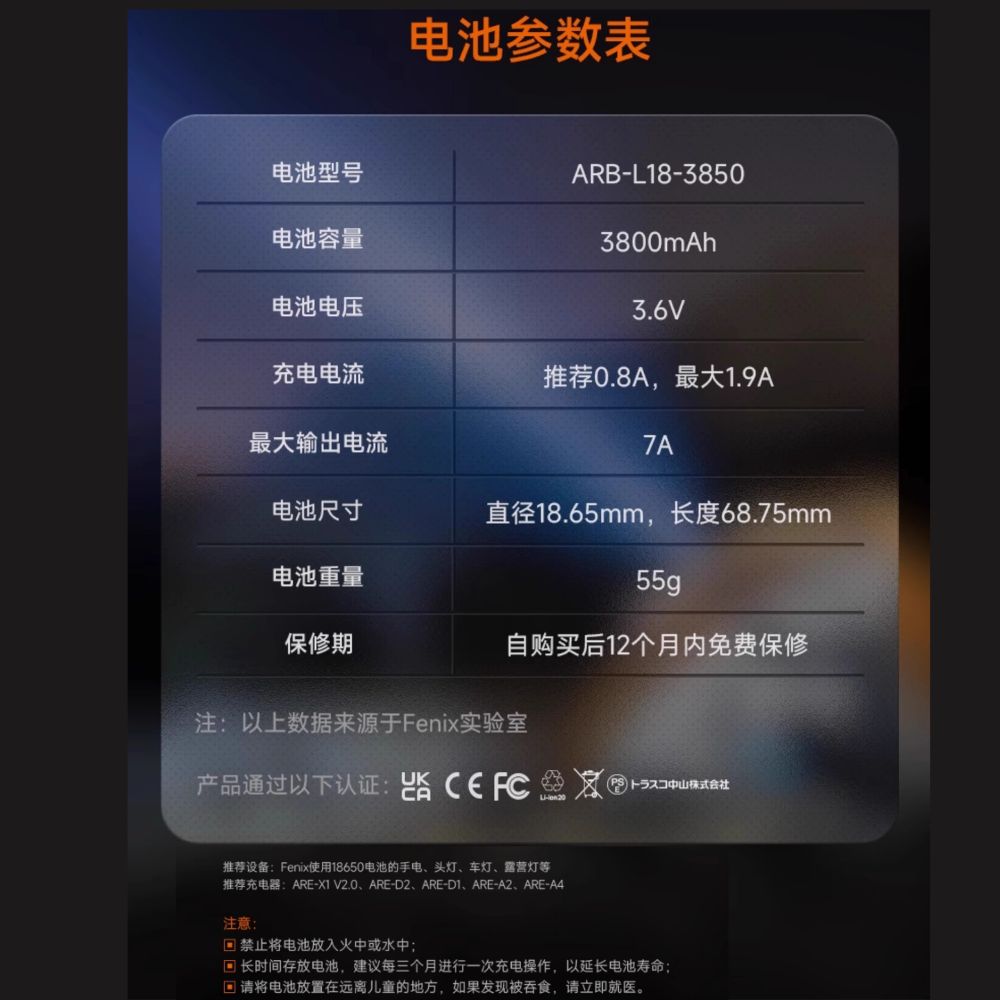 FENIX ARB-L18-3850 18650 正極 保護板 鋰電池 容量 3850mAh