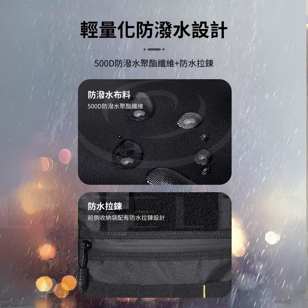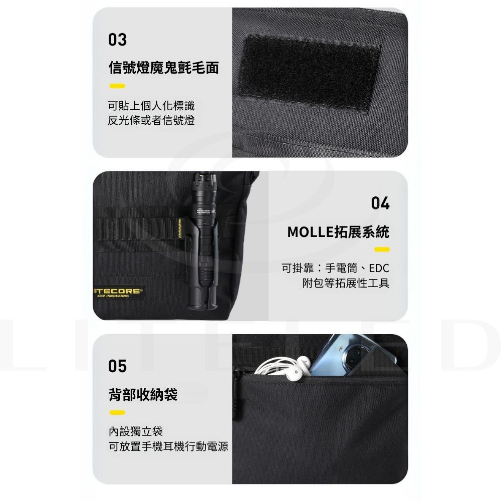 NITECORE SLB02Y 採用耐用耐磨的 500D 聚酯纖維製成,並經過防水處理。可調式加厚寬肩帶,內建防扭保護,確保背負舒適。