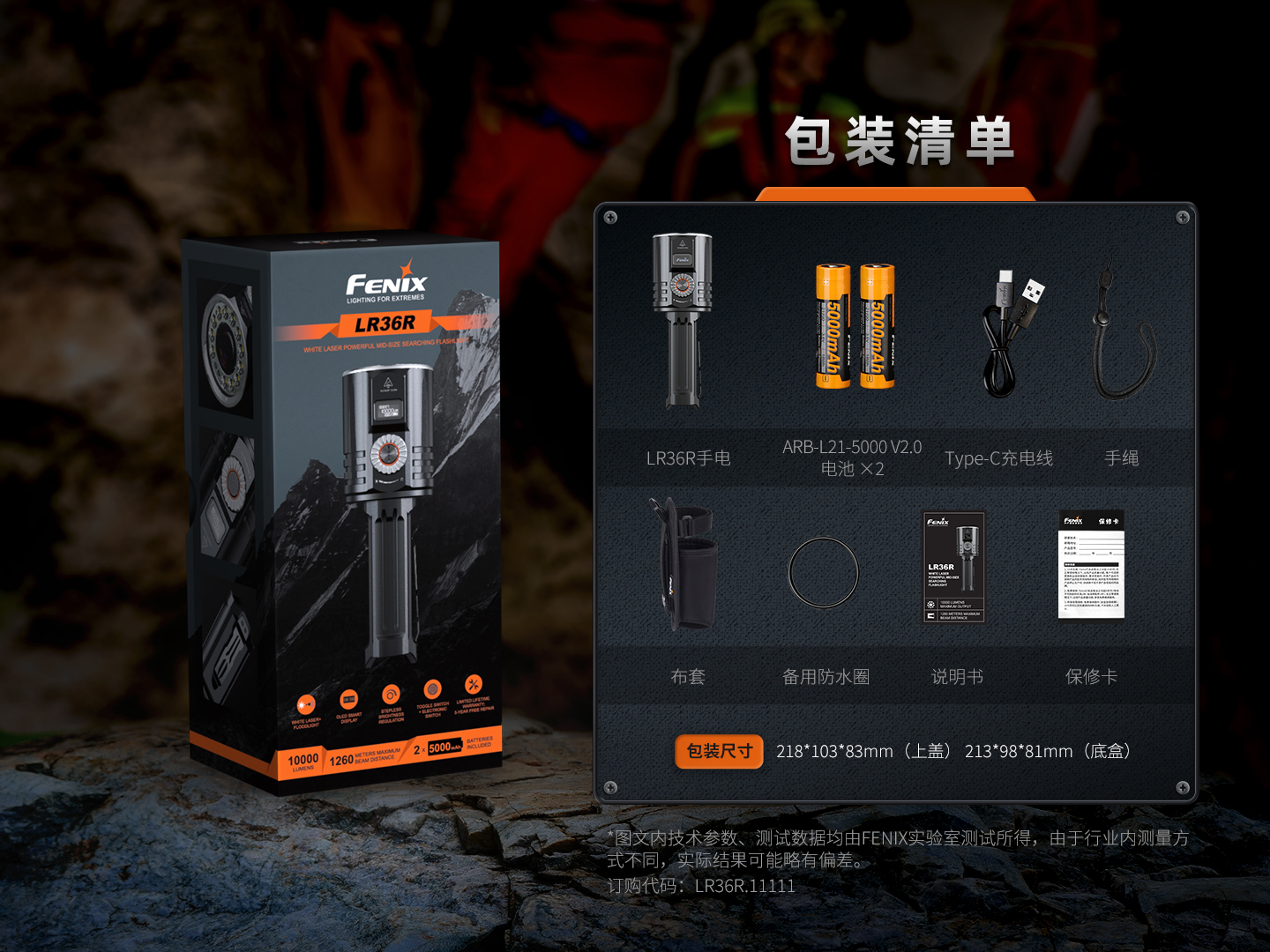 Fenix LR36R是一款激光搜索手電。它的主要亮點在於: