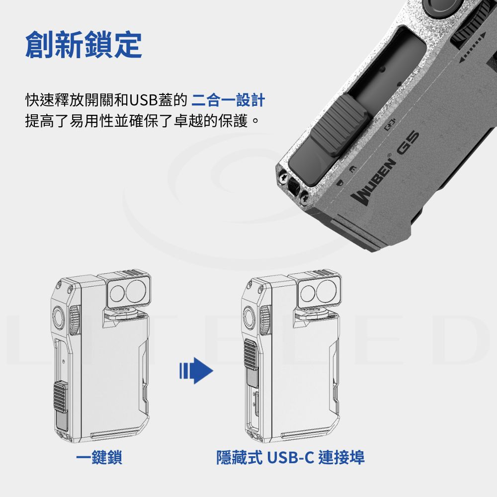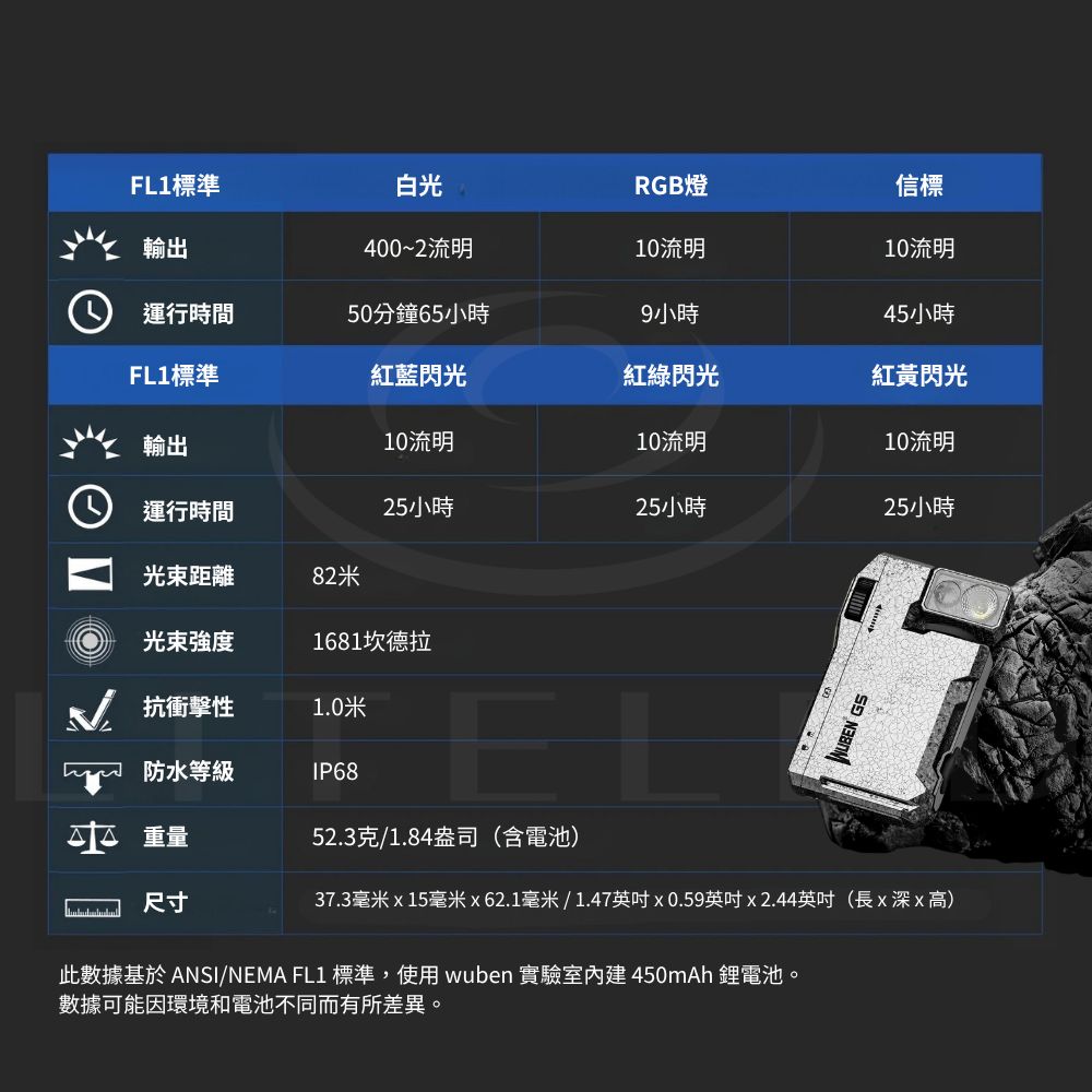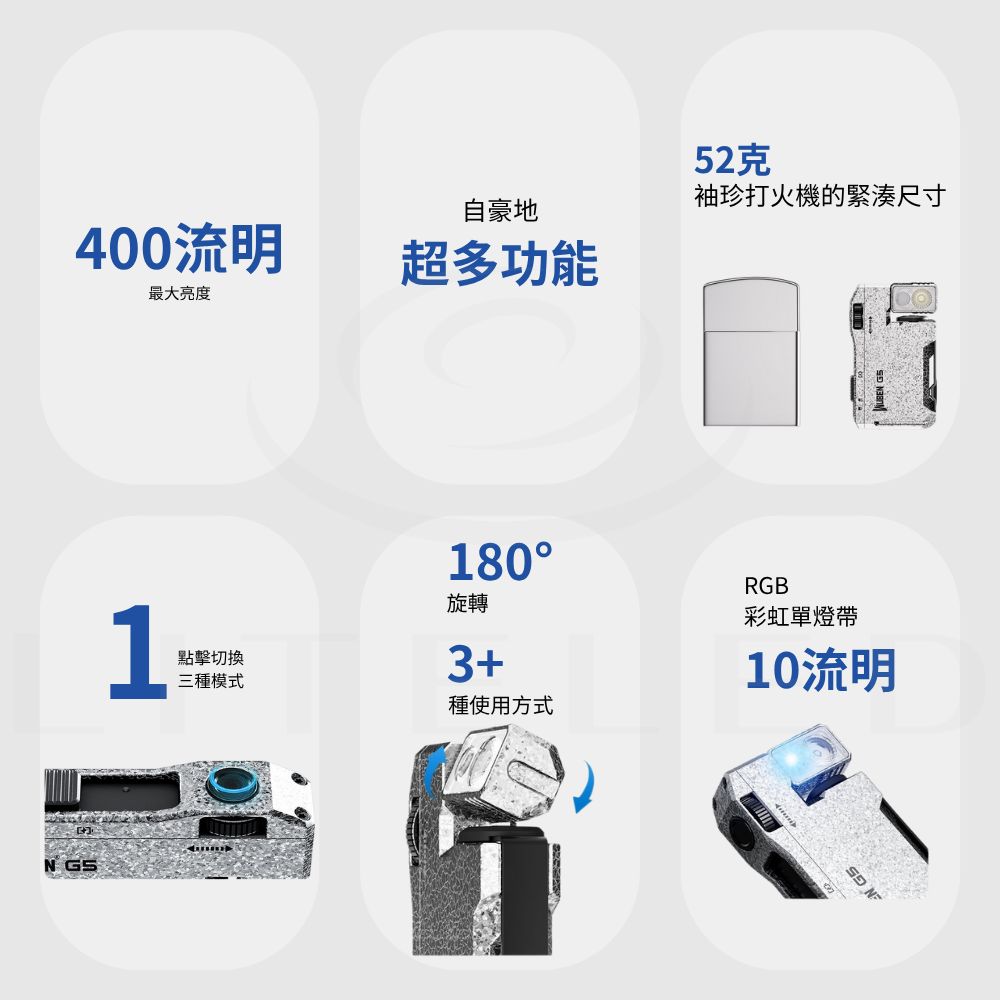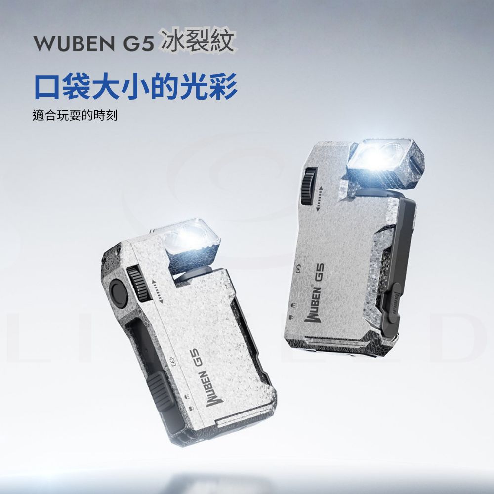 WUBEN G5 冰裂紋 多功能便攜燈 400流明 7色RGB 無極調節 背夾自由調整 尾部磁吸 180度旋轉