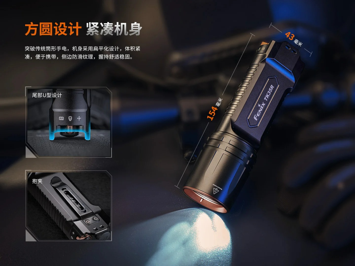 答:Fenix TK35R是一款高性能多模式戰術手電筒。它的主要亮點在於: