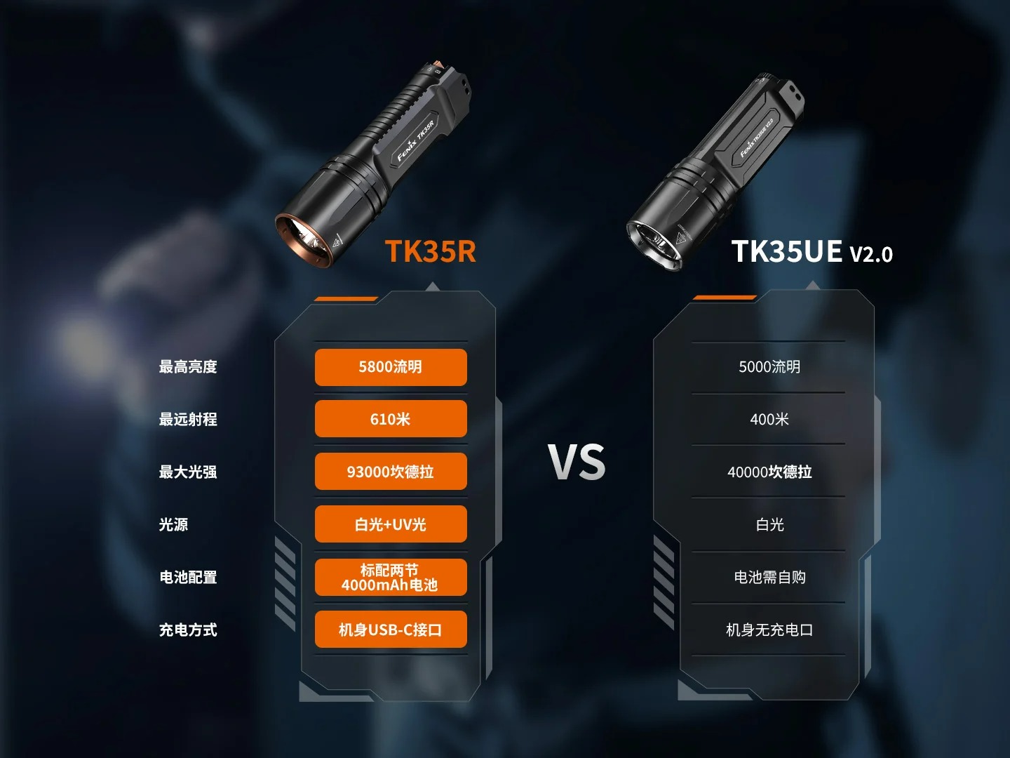 答:TK35R使用的是使用的是4顆Luminus SFT25R以及1顆Luminus SST08 UV燈珠,壽命50000小時;Fenix暫不提供更換服務,同時也不建議使用者自主更換,會有影響產品性能以及造成產品損壞的風險。