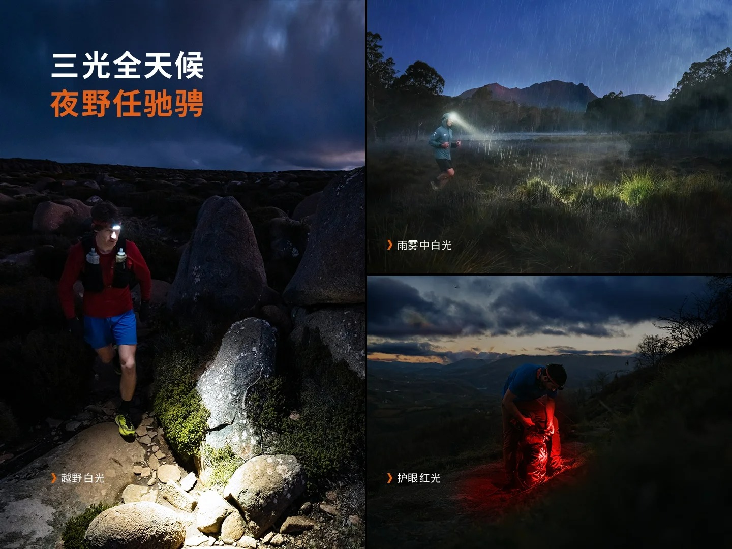 ◎冷白光、中白光及紅光三光源,可應對複雜的地形環境及雨霧雪天氣;