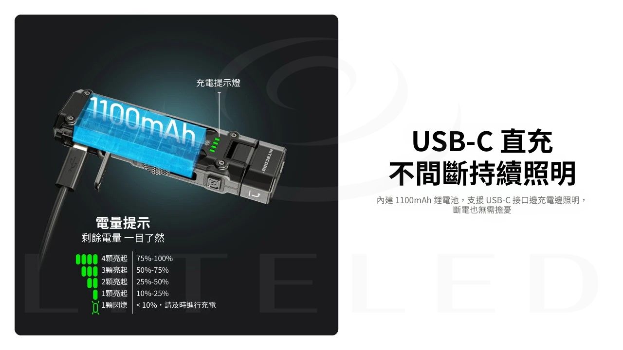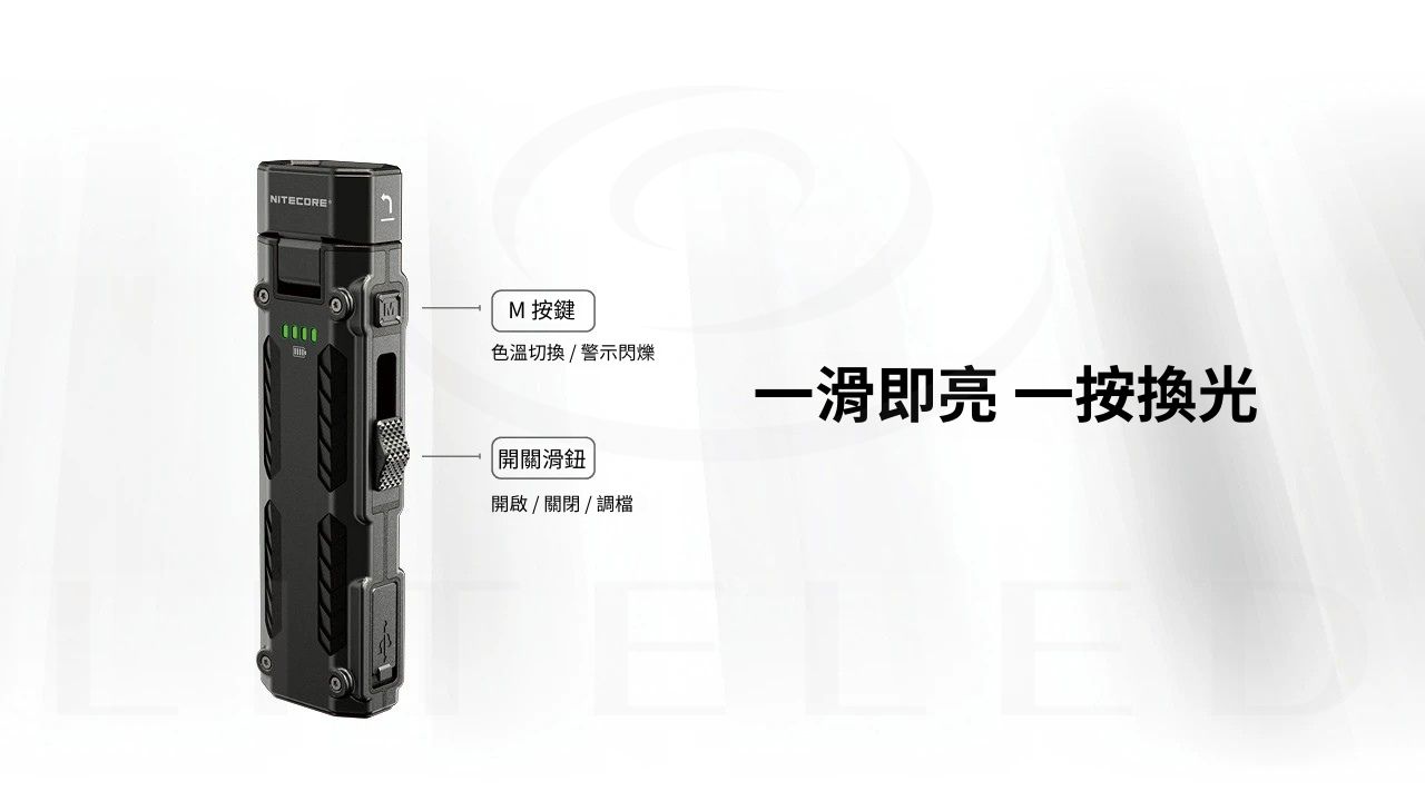此外,EDC09 配備直觀便捷的開關滑鈕與M按鍵,一滑即亮,一按換光,盲操無憂。內置1100mAh鋰電池,支持USB-C接口邊充邊用,續航無憂。三色溫均提供4檔亮度與警示閃爍模式,隨附柔光罩可化身露營燈。具備IPX6防水與2米防跌落性能,結合小巧扁平機身設計,輕松勝任日常、戶外及工業等多場景需求。