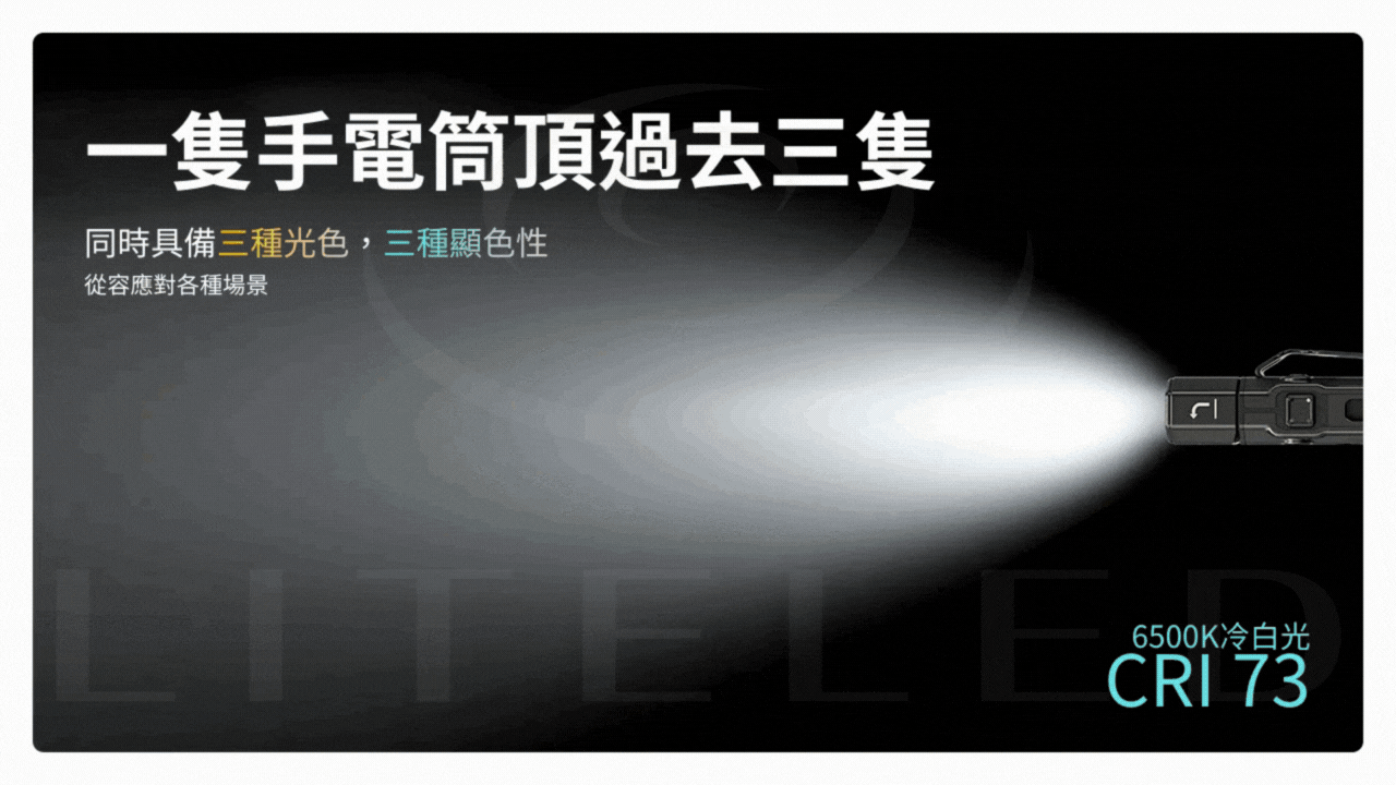 一只手電頂過去三支,同時具備三種光色,三種顯色性: