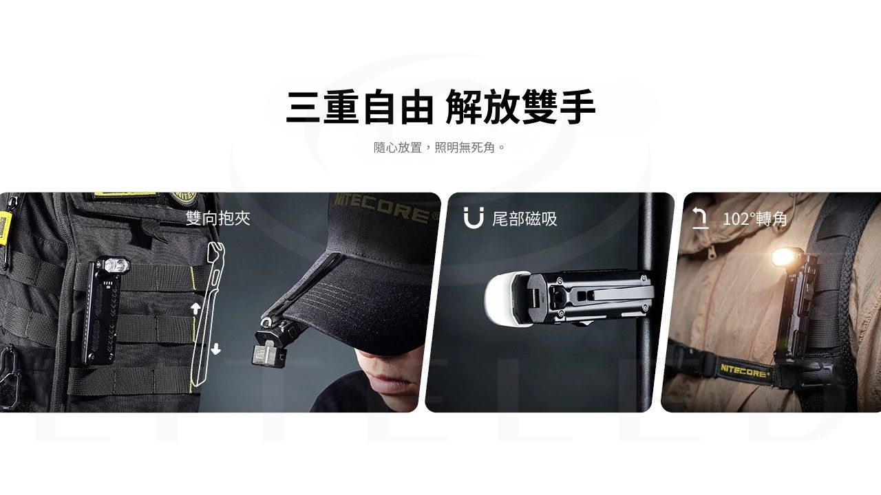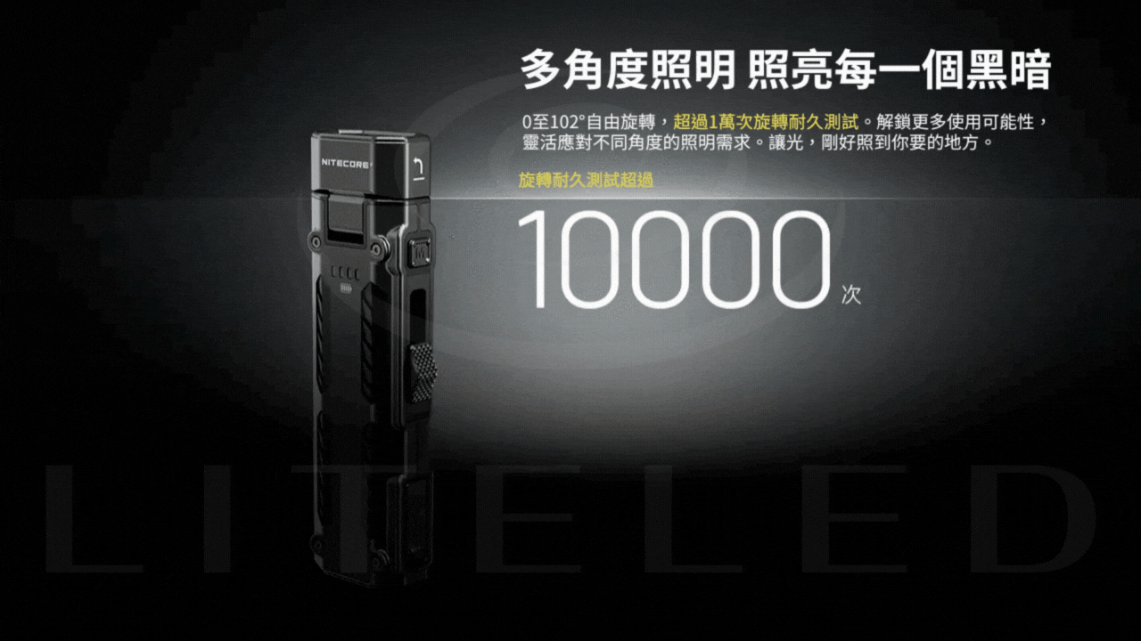 EDC09 支持0-102°自由旋轉,搭配尾部磁吸與雙向抱夾,實現三重照明自由,輕鬆應對多角度照明需求。最高1600流明輸出與153米遠射,遠泛兼顧,覆蓋多場景應用,照明全面無死角。