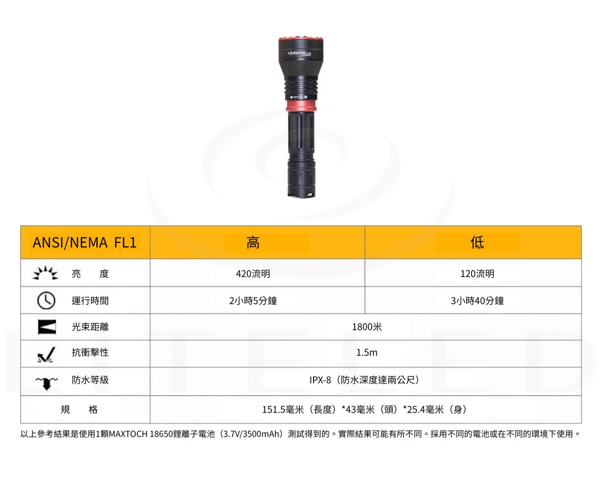 產品尺寸:151.5mm (長) × 43mm (燈頭) × 25.4mm (筒身)