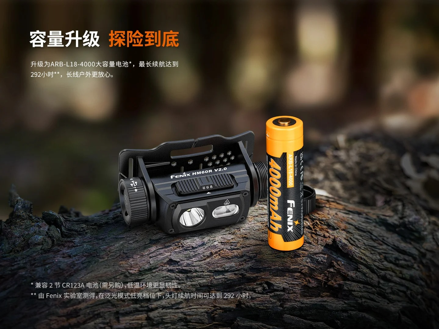 ◎ 標配一節ARB-L18-4000鋰電池,支援更換,相容2節CR123A電池