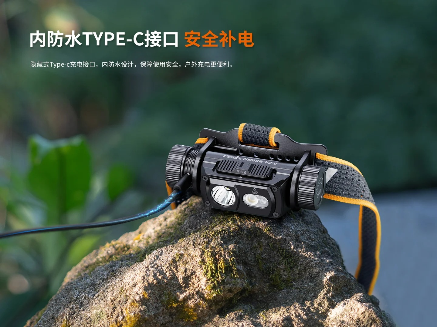 答:HM60R V2.0防護等級為IP68,可抵禦惡劣天氣,且Type-C充電介面具有內防水功能。
