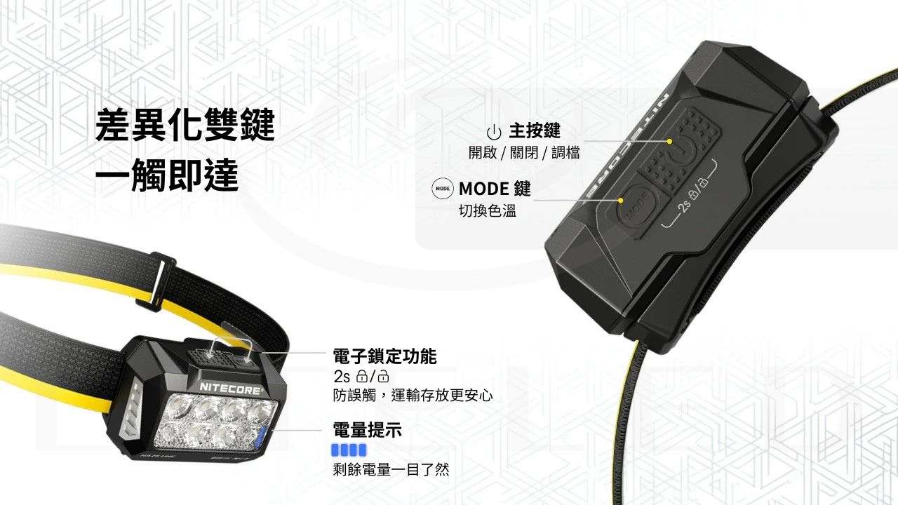● 標配1顆NITECORE HLB1500直充鋰電池,最長續航時間88小時