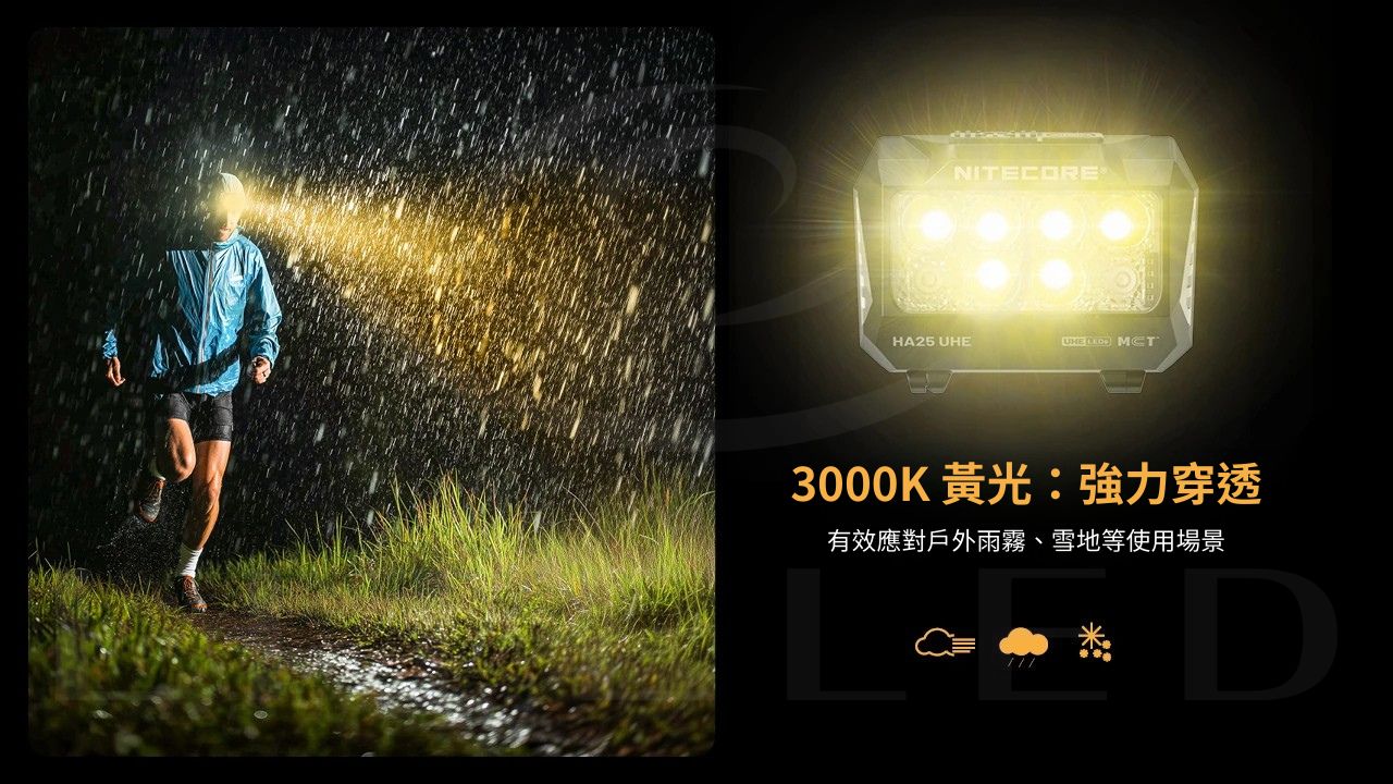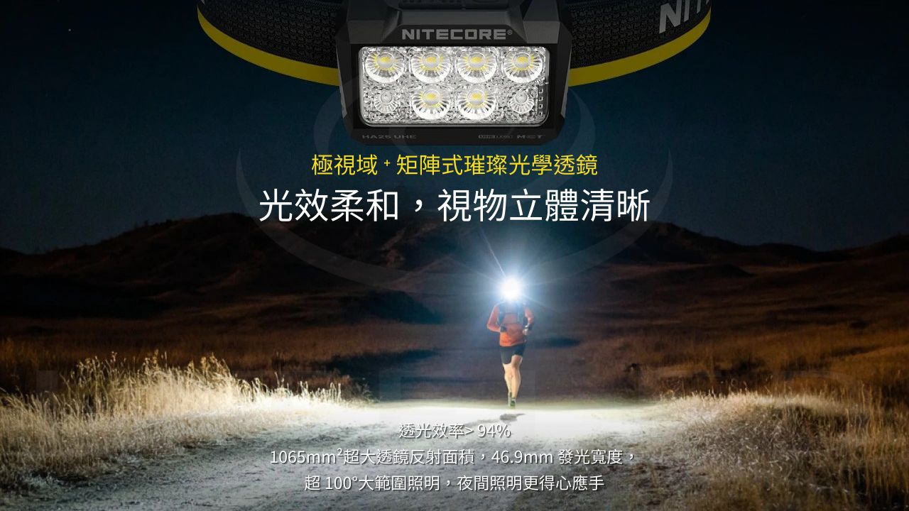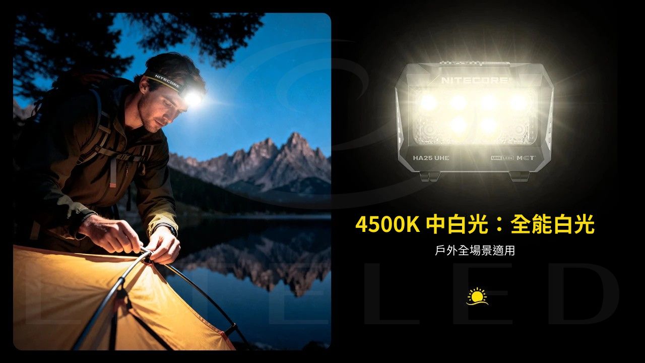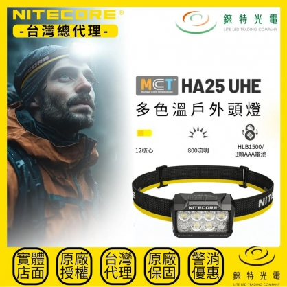 NITECORE HA25 UHE多色溫戶外頭燈,首款搭載12核多色溫MCT UHE LEDs的戶外頭燈,具備雙電源便捷用電、800流明與120米遠射性能表現、無需換電照亮一整晚的持久穩定照明體驗。