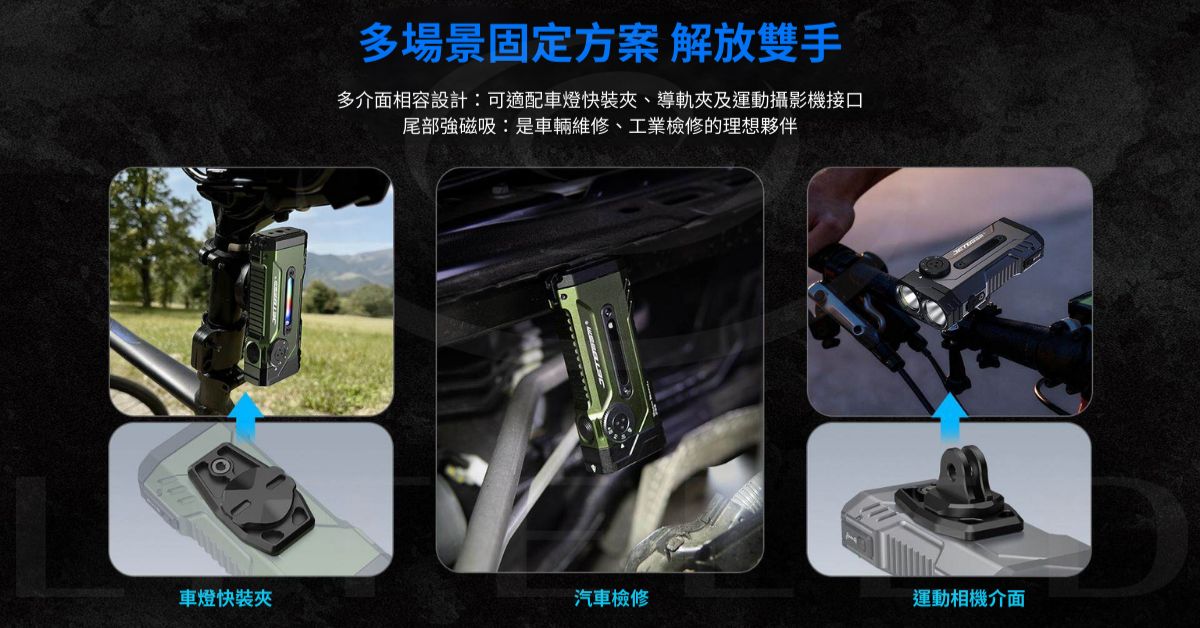 磁吸式設計,方便安裝:採用強力磁性尾蓋,M5 延長螺絲孔,完全相容於自行車和導軌安裝座,解放雙手,使用更便利。