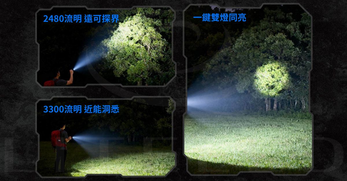 最大輸出:泛光模式 3300 流明;聚光模式 2480 流明
