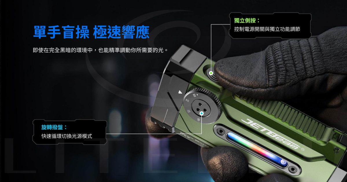 雙按鍵設計:旋轉撥盤 + 側邊開關