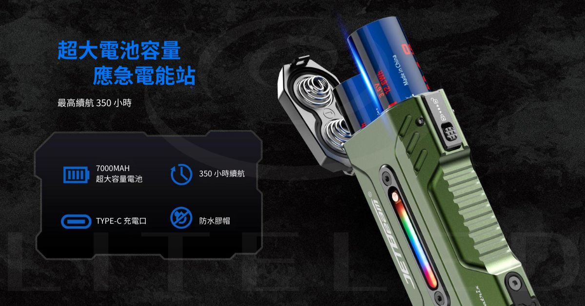 最大續航時間:泛光模式 350 小時; 聚光模式 240 小時