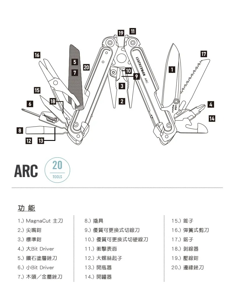 品名:LEATHERMAN ARC® TALOS 多功能工具鉗(未附收納套與其他任何配件)